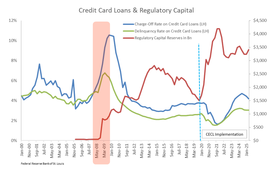 Credit card assets continued to perform even through the worst parts of the cycle, but regulation fundamentally changed bank capital math. CECL and post-crisis rules forced banks to carry far more capital against receivables that still generate strong yields, creating an imbalance between performance and capital treatment. Fidem was founded to correct that imbalance by managing credit with bank discipline and funding it with market efficiency.
